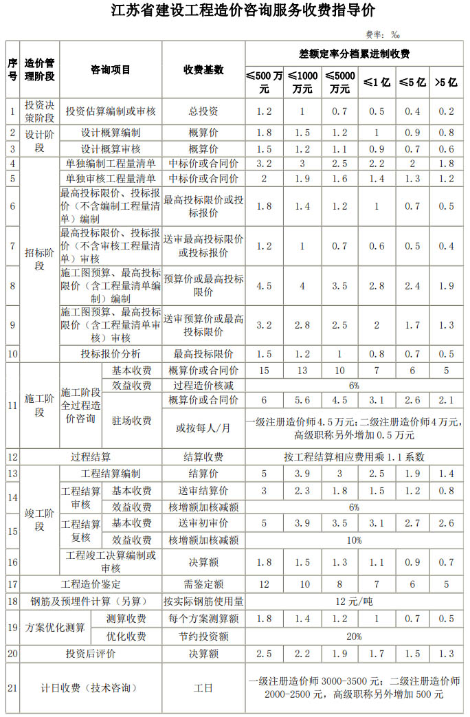 工程咨询收费标准